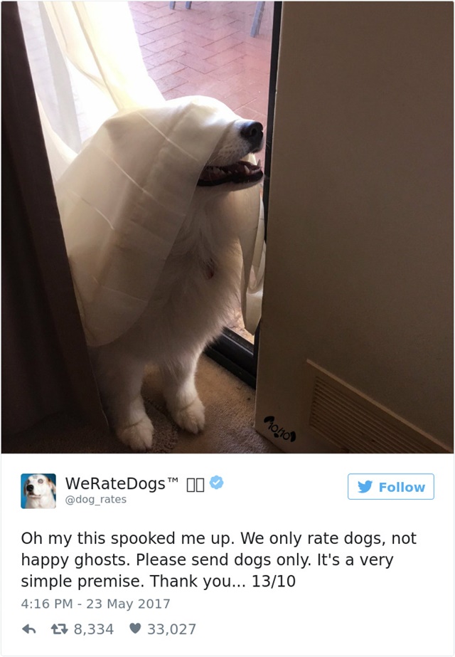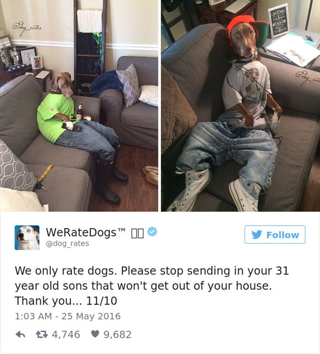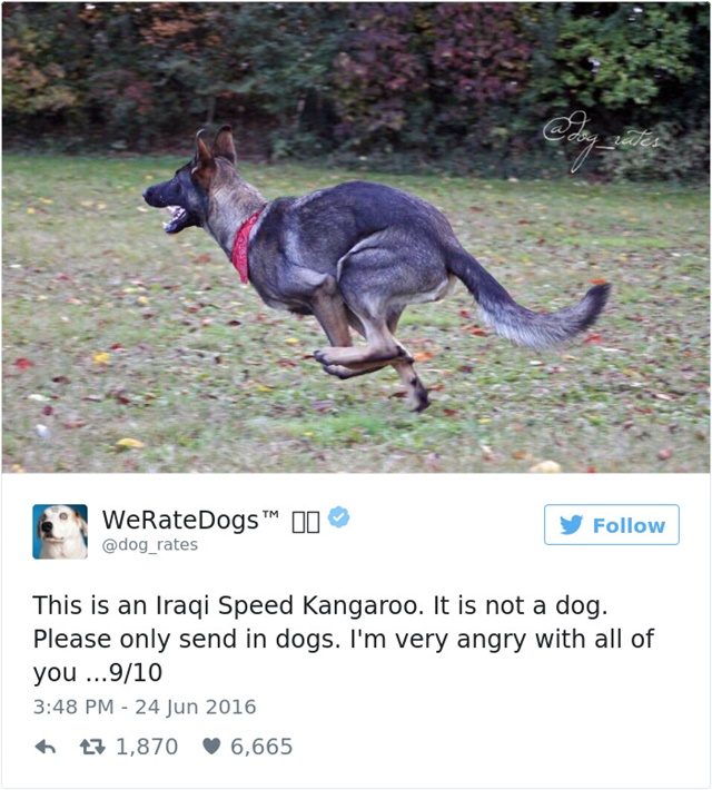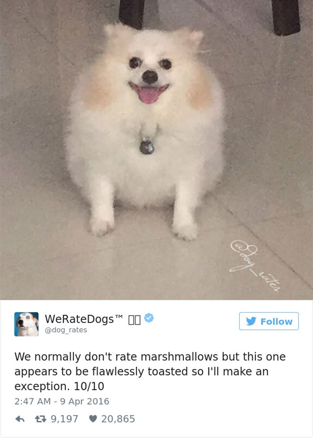 WeRateDogs คือแอคเคาท์หนึ่งในทวิตเตอร์ที่คอยทำหน้าที่ “วัดระดับน้องหมา” ด้วยการให้คะแนนต่างๆ จากคะแนนเต็มสิบ สิ่งที่คุณต้องทำก็คือส่งรูปภาพที่คิดว่าดีที่สุดของเหล่าน้องหมาเข้าไป