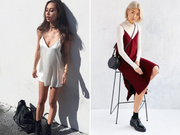 เดรสผ้าซาตินเรียบๆ ที่ใส่แล้วดูเบาสบายเน้นสีพื้นๆ หลายคนบอกว่าเหมือนชุดนอนใช่มั้ย แค่ใส่เครื่องประดับเก๋ๆ สักชิ้นก็กลายเป็นชุดที่ให้อารมณ์สาวเซ็กซี่ วินเทจเบาๆ แล้วล่ะค่ะ หรือถ้าชิคมากกว่าเดิม แนะนำให้ใส่เสื้อไว้ด้านในด้วยเลยก็ได้ค่ะ