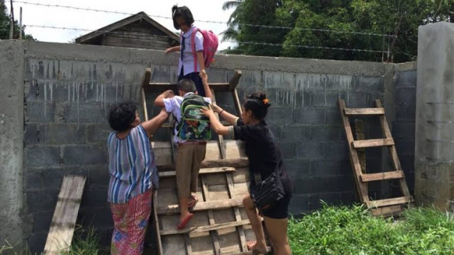นางสาว อัญชิษฐา ได้กล่าวพร้อมกับน้ำตาที่คลอเบ้า ว่า ?ก่อนหน้านี้ลูกทั้งสองยังพอปีนขึ้นกำแพงไปโรงเรียนได้ แต่พอกั้นลวดหนามอีกชั้นก็ไม่สามารถปีนข้ามไปโรงเรียนได้อีก และช่วงนี้น้ำท่วมร่องสวนปาล์มก็ไปไม่ได้เหมือนกันเหตุการณ์นี้เกิดตั้งแต่เดือน เม.ย.ที่ผ่านมา เจ้าหน้าที่ฝ่ายปกครอง นายสมปอง พ่วงพูล กำนัน ต.นาเมืองเพชร และหน่วยงานก็ยื่นมือลงมาช่วยแต่ไม่มีใครช่วยได้เลย แต่วันนี้มันโหดร้ายเกินไปกับสิ่งที่ครอบครัวของตนโดนกระทำ ซึ่งลำพังตน ยายและป้าพอเอาตัวรอดได้ แต่ลูกทั้งสองคนน่าสงสารมาก ถ้าไม่ได้เรียนหนังสือลูกต้องหมดอนาคต