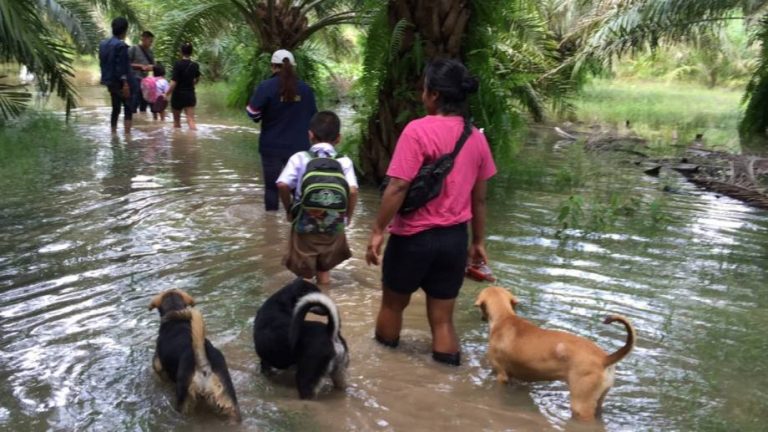นางสาว อัญชิษฐา เล่าว่า ลูกของตนเป็นฝาแฝดชื่อ ด.ช.อดิศร กิ้มเฉี้ยง หรือน้องเพชร และ ด.ญ.ศรสวรรค์ กิ้มเฉี้ยง หรือน้องพลอย อายุ 7 ปี กำลังเรียนอยู่ชั้น ป.1 โรงเรียนไทยรัฐวิทยา 39 ต.นาโต๊ะหมิง อ.สิเกา จ.ตรัง ที่ลูกไม่สามารถไปโรงเรียนได้นั้น เพราะว่าไม่มีเส้นทาง ขณะที่อีกเส้นทางเป็นสวนปาล์มน้ำมันที่พอจะเดินผ่านได้มีน้ำท่วมขังในร่องสวนสูงกว่า 50 ซม.
