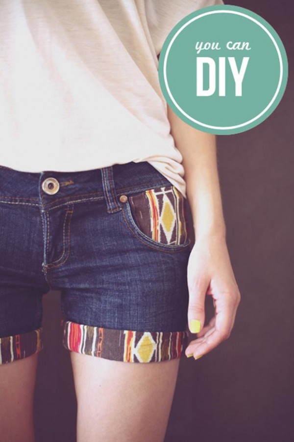 7. ตกแต่งกางเกงขาสั้นด้วยผ้าเก่าหรือเสื้อเก่าลาย Printed