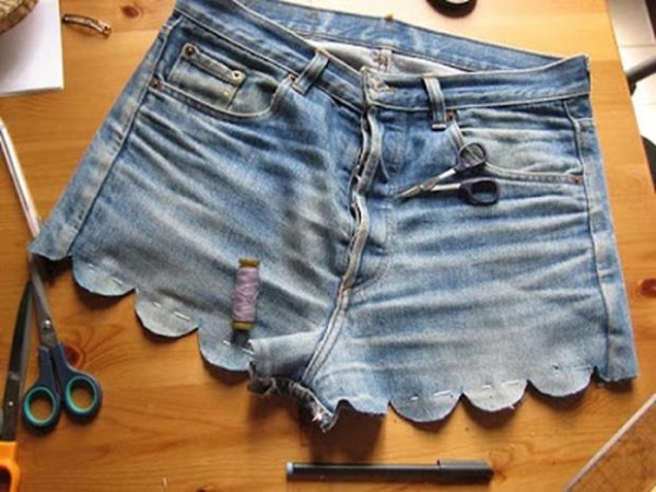 2. ตัดปลายกางเกงขาสั้นตัวเก่าให้เป็นแบบ Scallop