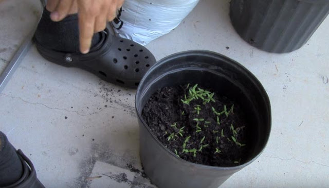 โรยดินให้ทั่วจนมองไม่เห็นมะเขือเทศ ก็เป็นอันเสร็จขั้นตอน