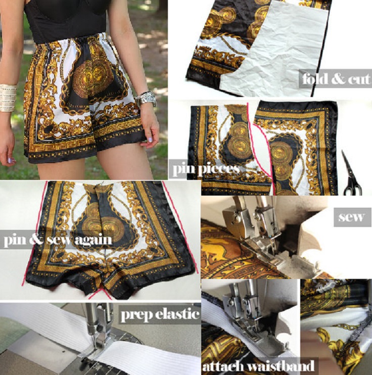 เอาผ้าคลุมไหล่ลายถูกใจมาตัดเป็นกางเกงขาสั้นเอวสูง นอกจากจะได้ผ้าที่ถูกใจแล้ว เนื้อผ้าคลุมไหล่มักจะให้ลุคที่ดูหรูหราอีกด้วย