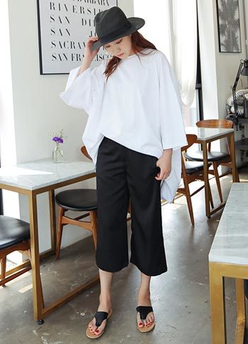เสื้อตัวใหญ่กับกางเกงห้าส่วนขาบาน เสริมด้วยหมวกอีกนิด เก๋ไปเลยลุคเนี้ย