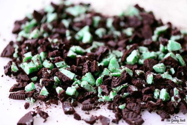 – โอรีโอ้รสมินต์ 4 ชิ้น และ โอรีโอ้รสอื่นๆ อีก 4 ชิ้น นำมาสับหยาบๆ