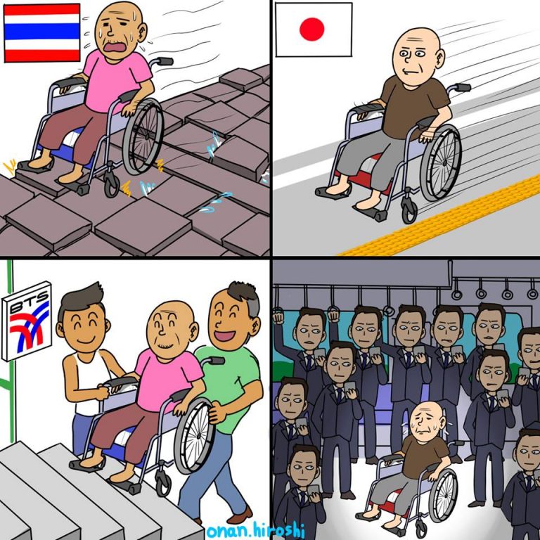 ผิดกับทางญี่ปุ่นที่มีสวัสดิการให้คนพิการอย่างดีตั้งแต่ออกจากบ้านแล้ว