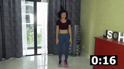 กระโดดย่อตัวโดยเหยียดขาซ้ายไปด้านหลัง ขาขวาย่อในลักษณะตั้งฉากกับพื้น จากนั้นกระโดดสลับขา ทำอีกข้างจนครบ 20 วินาที