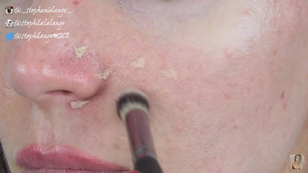 3. จากนั้นใช้แปรงเดิมแตะรองพื้นและคอนซีลเลอร์ค่อยๆ เบลนด์ในจุดรูขุมขนกว้างให้เนียน