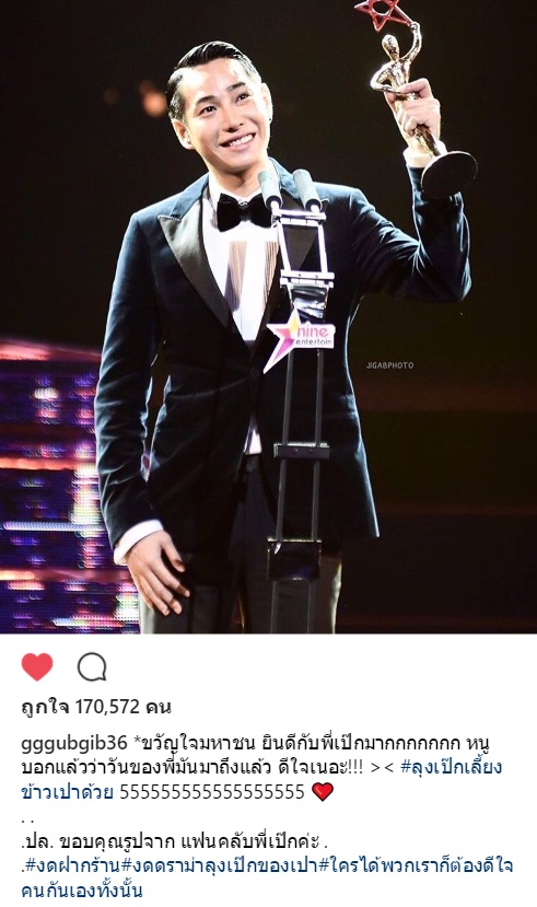 ขณะที่ทางด้านไอจีกุ๊บกิ๊บ ก็มีการได้โพสต์ภาพแสดงความยินดีกับ “เป๊ก ผลิตโชค” ที่ได้รับรางวัลขวัญใจมหาชนครั้งนี้ด้วย ซึ่งก็มีทั้งแฟนคลับเป๊กและน้องเป่าเปา ร่วมคอมเม้นท์แสดงความยินดีอย่างล้นหลาม