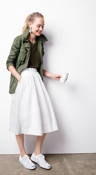 แต่กลับเห็นสาวๆ หันมาใส่รองเท้าผ้าใบกันมากขึ้น ก็ถือว่าเป็นอีกเทรนด์ตอนนี้เลย ผ้าใบเข้าได้กับทุกชุดจริงๆ คำนี้ยังใช้ได้สินะ