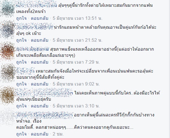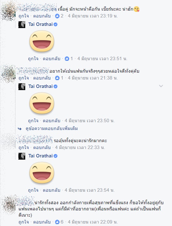 ที่งานนี้เมื่อทางด้านแฟนคลับได้เห็นภาพคู่กิจกรรมหวานออกมา ก็ทำมโนเตลิดกันยกใหญ่ เข้ามากระหน่ำคอมเม้นท์แสดงความคิดเห็นกันอย่างสนั่นหวั่นไหว อยากให้สาวต่าย เปลื่ยนสถานะจาก “เอื้อย” เป็น “ผู้สาว” ของหนุ่มไผ่อีหลี !!!