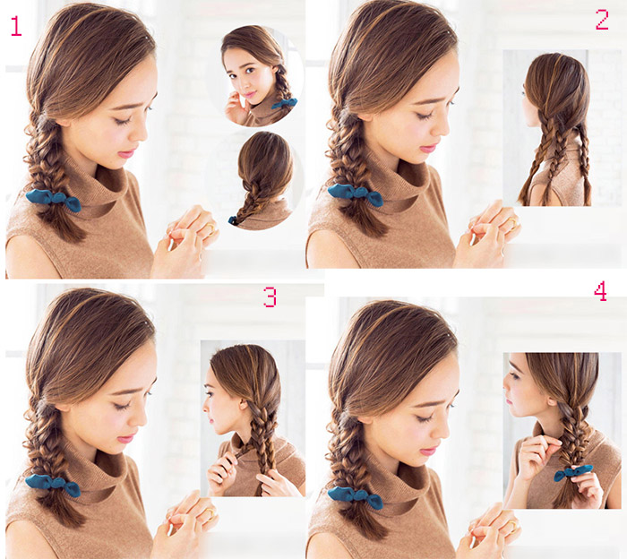 แบบที่สอง ทรงผมเหมือนถักเปีย แต่เราแค่ไขว้ผมไว้ดูน่ารักกว่าถักเปียสองข้าง