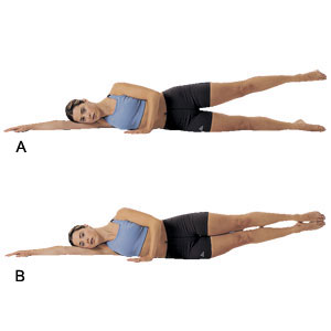 1.นอนตะแคงข้าง เหยียดแขนให้สุดแล้ววางศีรษะและใบหน้าไว้บนท่อนแขน