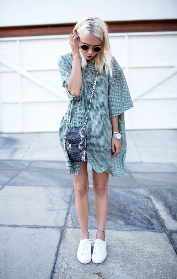 1. เปลี่ยนเสื้อเชิ้ตตัวหลวมให้เป็นเดรสเก๋ๆ