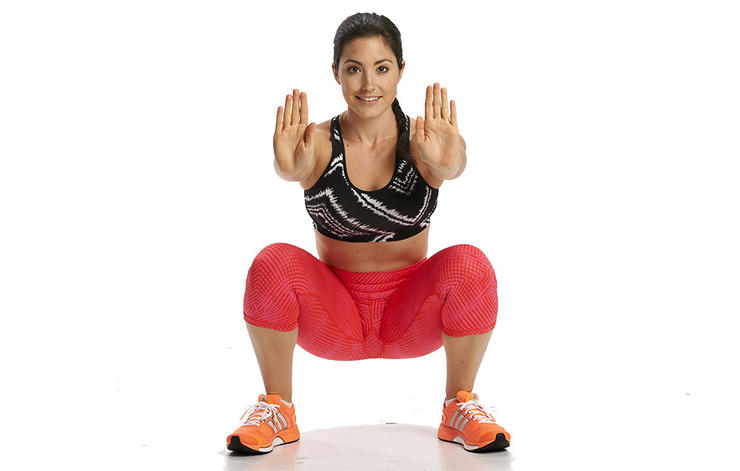 1.สควอต เป็นการยืนตัวตรงแล้วนำมือยื่นไปข้างหน้าในระดับหัวไหล่พร้อม นั่งลงตรงๆค้าแล้วนับในใจ1-5วินาที ซึ่เมื่อลุกขึ้นก็เช่นกัน ทำไปเรื่อย ๆ 3 เซ็ตด้วยกัน
