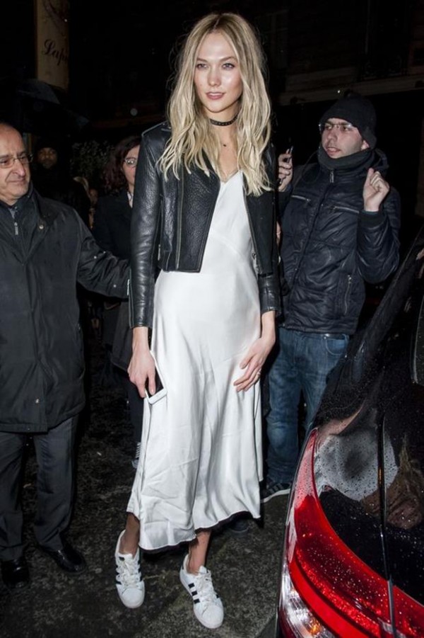 สาว Karlie มาในลุคสตรีทสุดๆ ชุด Slip Dress ยาวกับรองเท้าผ้าใบ และแจ็คเก็ตหนัง