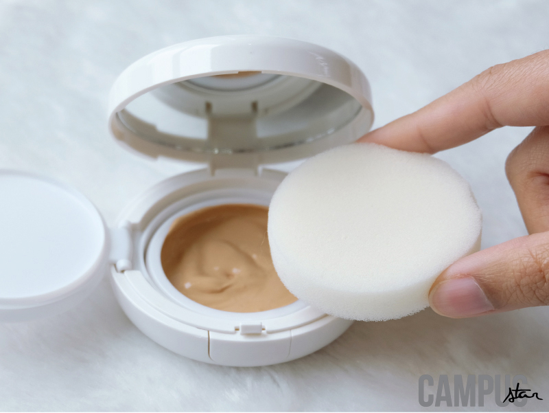 เวลาใช้งานก็แค่เอาพัฟ Cushion กดๆ Foundation ที่อยู่ในฟองน้ำ แล้วก็เอามากดๆ ให้ทั่วใบหน้าได้เลยค่า