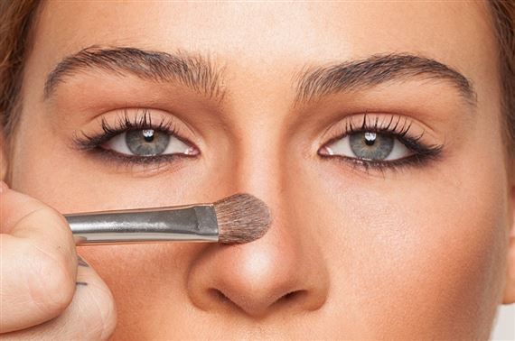 เมื่อจมูกของสาวไม่ได้รูป หรือใหญ่เกินไป การลงไฮไลท์อาจทำจมูกยิ่งดูเด่น ดังนั้นควรปิดท้ายด้วยการปัดแป้งเนื้อแมตต์ที่จมูก