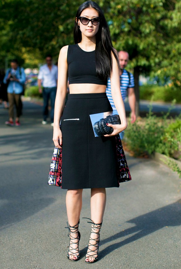 เลือกกระโปรงเอวสูงลายเก๋ๆมาใส่กับเสื้อแขนกุดดูสิจ๊ะ มันจะทำให้ลำตัวช่วงกลางดูเล็กลงไปเลยล่ะ