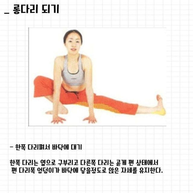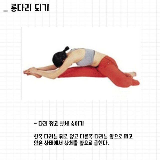 1. นั่งบนพื้น ขาเหยียดตรง เข่างอข้างหนึ่ง อีกข้างหนึ่งยืดขึ้นตรงๆ ด้านบน